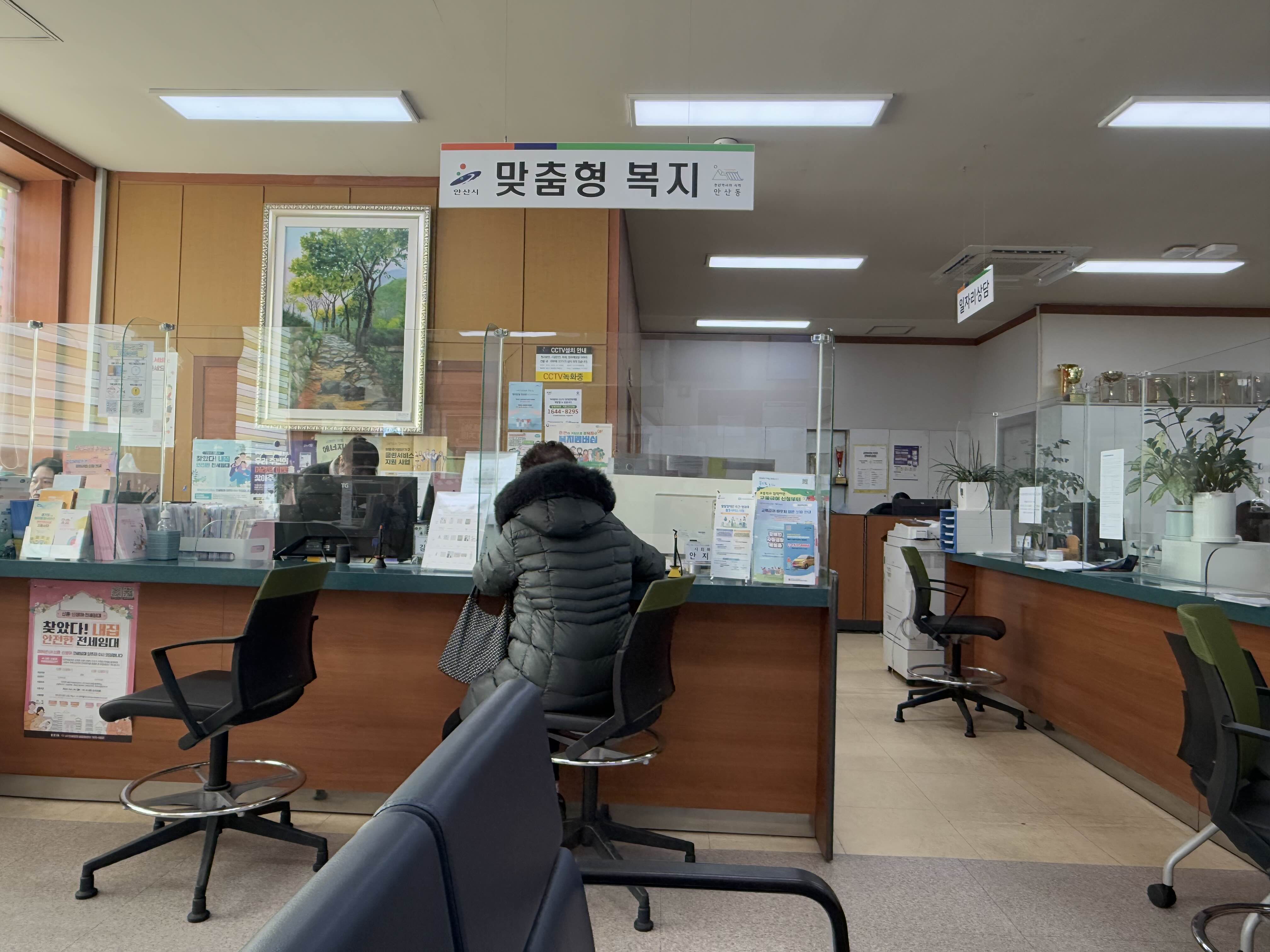 안산동 주민센터 복지 상담 창구가 따로 마련되어 있어요. 안산시 복지 관련해서 알아보고 싶은 분들은 방문하셔서 편하게 물어보시면 될 듯한 분위기에요.