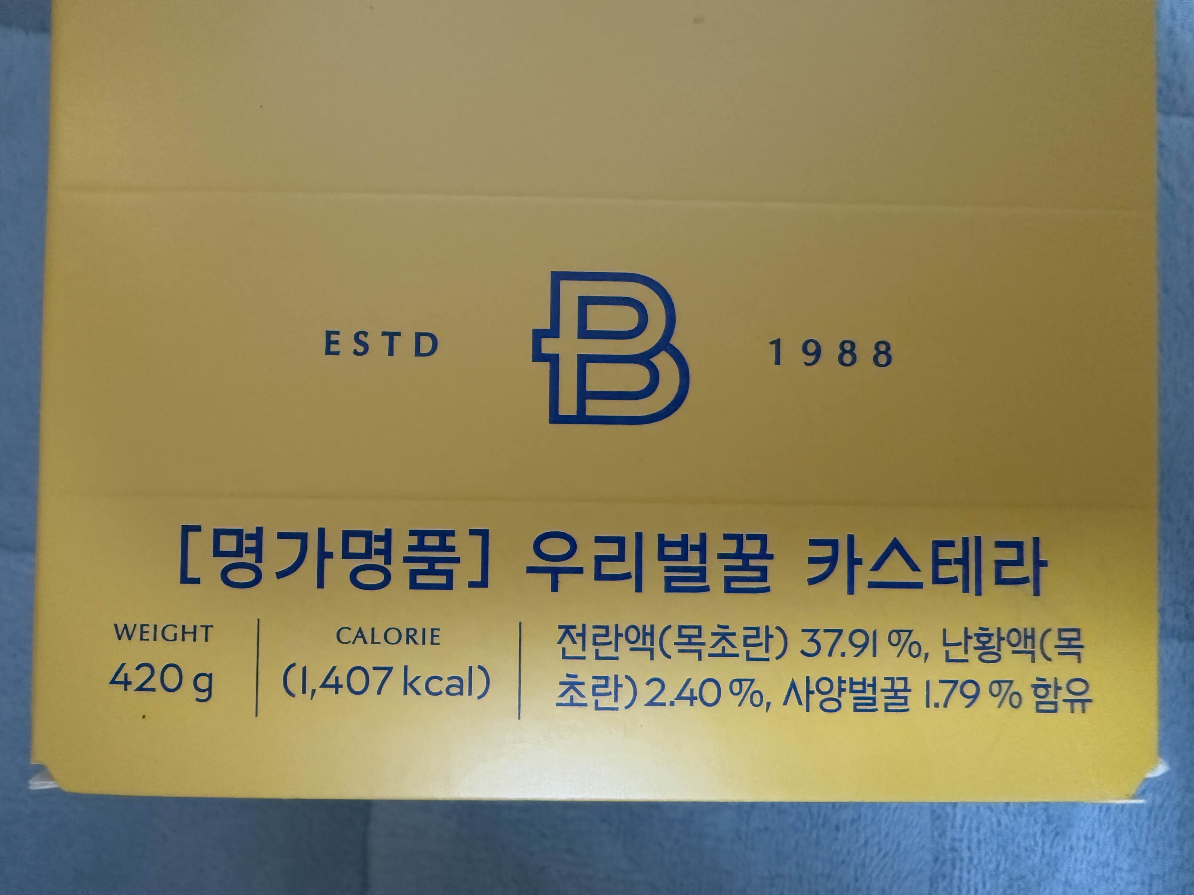 파리바게트의 우리벌꿀 카스테라는 420g의 충분한 양이라서 가족과 함께 나눠 먹기에 적당해요. 총 칼로리는 1,407kcal. 이 카스테라의 가격은 14,000원으로 상당히 합리적인 가격이라고 생각되었어요. 그리고 카스테라의 계란 함유량이 40% 정도로 높고 사양벌꿀을 함유하고 있어서 정말 진한 풍미와 감칠맛 가득한 단맛을 느낄 수 있어요.