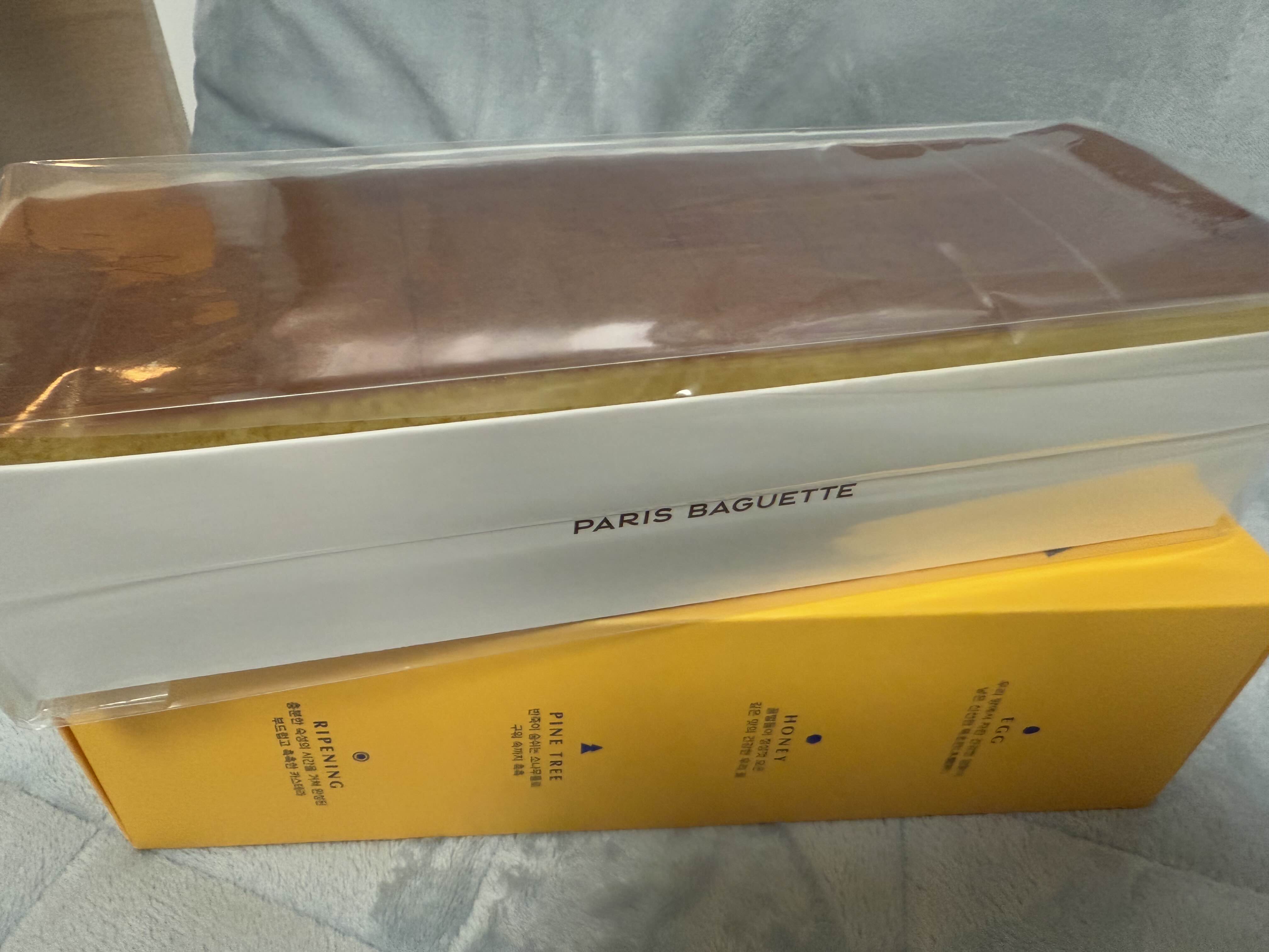 파리바게트 우리벌꿀 카스테라는 건강한 암탉이 낳은 신선한 목초란과 황금빛 우리 꿀과 함께 반죽해서 소나무 틀에 담아 속까지 촉촉하게 구워낸 부드러운 카스테라라고 하네요.
